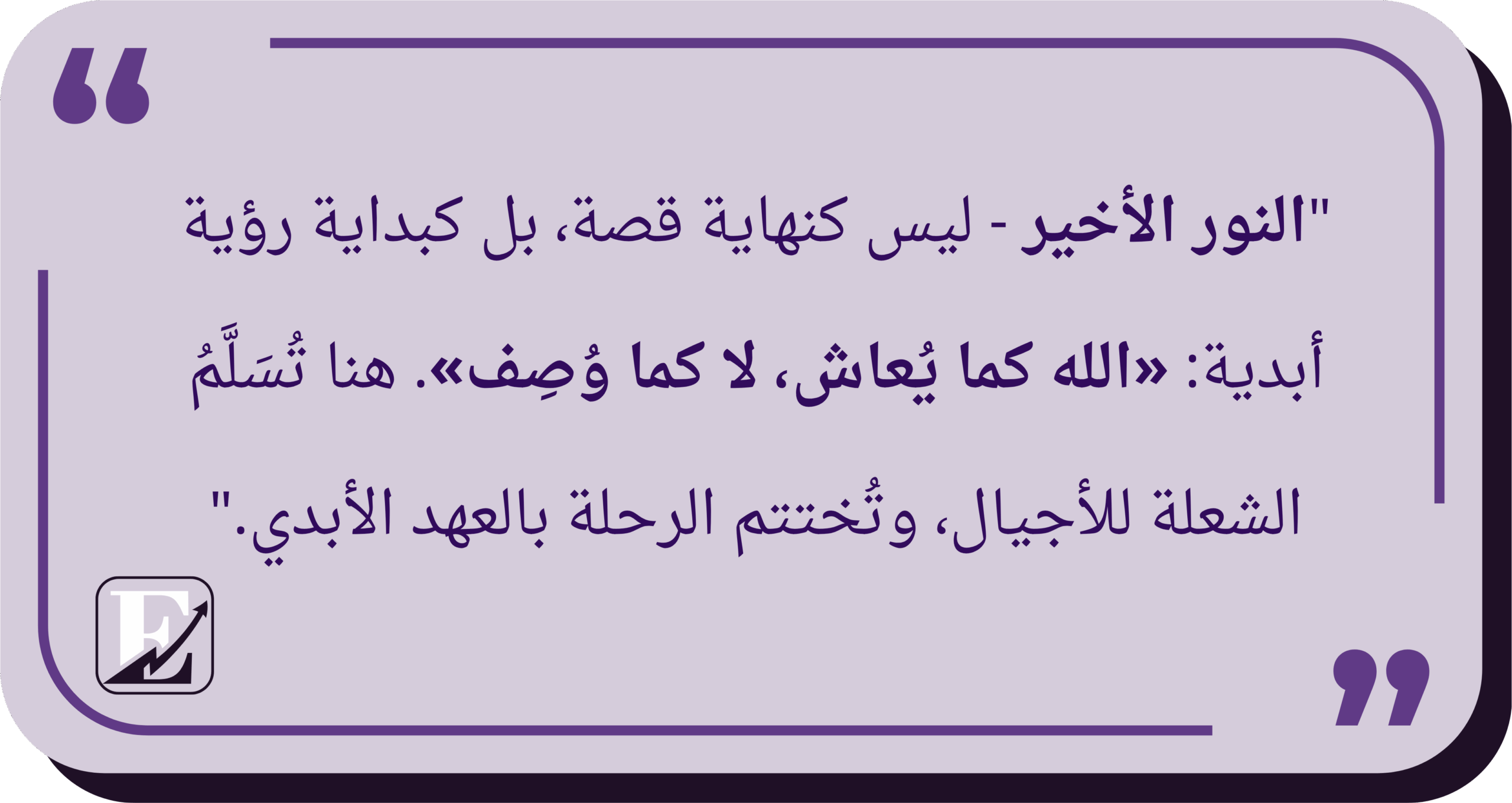 إنهــا دعــوة صامتــة لــكل مــن حمــل جرحـاً في قلبــه أن يـراه لاَّ كعائــق، بــل كرســالة، وأن يــدرك أن كل شــعلةٍ حين تنطفــئ لاَّ تفنــى، بــل تفســح الطريــق لشــعلةٍ جديــدة تولــد.